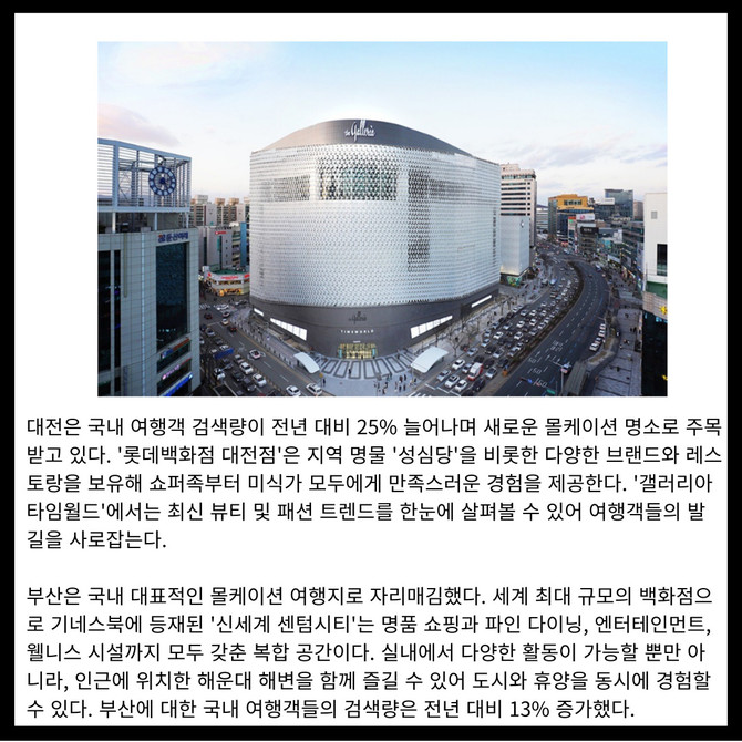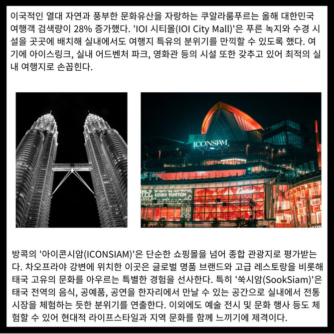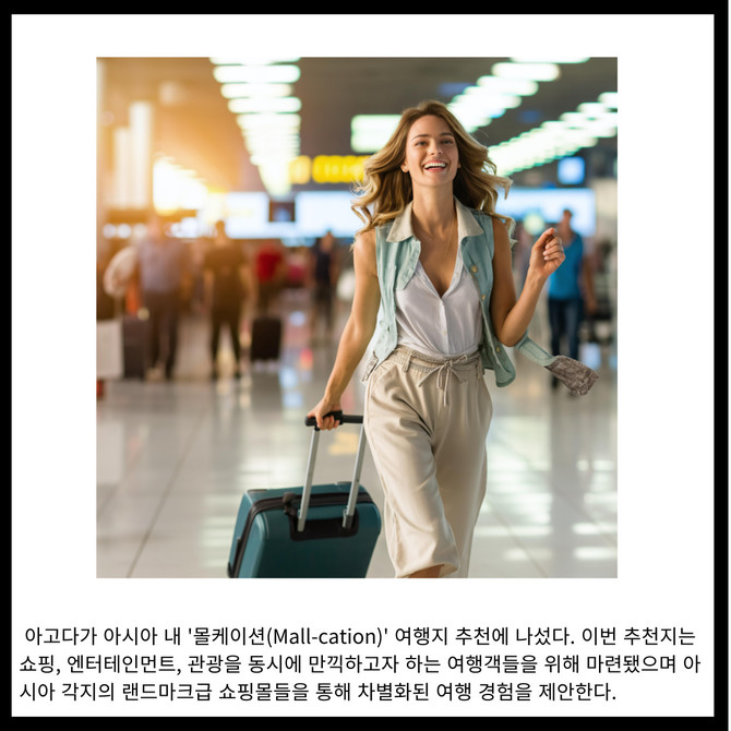 [프라임경제] 아고다가 아시아 내 '몰케이션(Mall-cation)' 여행지 추천에 나섰다. 이번 추천지는 쇼핑, 엔터테인먼트, 관광을 동시에 만끽하고자 하는 여행객들을 위해 마련됐으며 아시아 각지의 랜드마크급 쇼핑몰들을 통해 차별화된 여행 경험을 제안한다.
