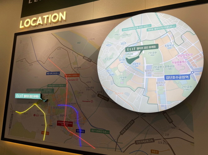 22일 오전, 인천 서구 완정로. 인천지하철 2호선 검단사거리역 2번 출구를 나와 5분 정도 걷자, 엘리프 검단 포레듀 견본주택이 모습을 드러냈다. 검단신도시 내 실거주 중심 신규 분양을 기다린 수요자 이목이 집중됐지만, 분양 승인 일정이 지연되 탓에 현장은 다소 한산한 분위기다.