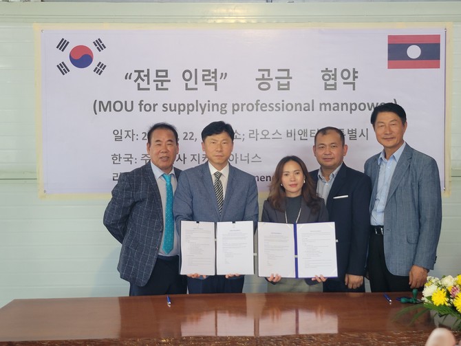 [프라임경제]㈜지케이아너스(대표 권혁관)는 지난 22일 라오스 비엔티안에서 PHUEANMIT EMPLOYMENT SERVICE SOLE CO., LTD와 전문인력 양성 및 한국 송출을 위한 업무 협약(MOU)을 체결했다고 23일 밝혔다.