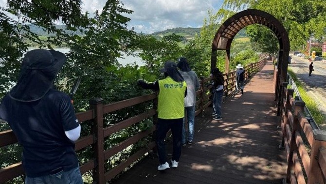 이번 점검은 입추가 지나 본격적인 가을 행락철 관광 성수기를 대비해 진행됐으며, 예당관광지팀 전원이 참여했고 주요 점검 구역은 예당호 느린호수길을 중심으로 산책로 목재 데크, 시설물 균열 및 파손 구간, 폐기물 적치 구간 등이 포함됐다.