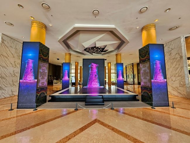 또한 앞서 언급한 4개의 기둥에는 LED 화면 외에도 황금의 나라 신라의 특징을 담은 금령총 금관, 천마총 금제 관식을 스틸아트로 표현해 장식했다.