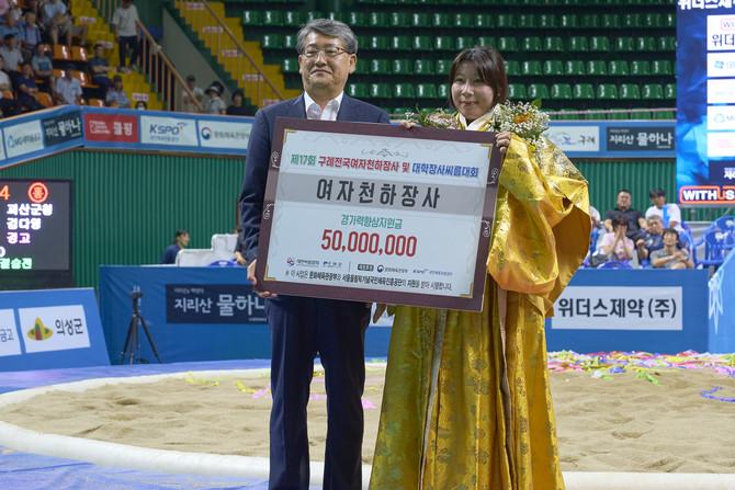 특히, 구례군청 소속 엄하진 선수가 여자 전문체육 국화급에서 우승하며 여자씨름의 발상지인 구례에서 16번째 장사 타이틀을 획득했다.