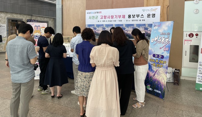 이날 군은 양천구청 1층 로비에 고향사랑기부제 답례품 전시 부스를 마련해 호우피해 복구를 위한 긴급 모금과 오는 28일에 개막하는 제3회 장항 맥문동 꽃축제 등 주요 행사 일정을 알렸다.