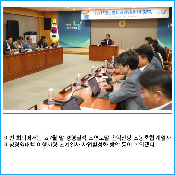 [프라임경제] 농협중앙회가 서울 중구 소재 본관 중회의실에서 '제5차 범농협 비상경영대책위원회'를 개최했다고 25일 밝혔다.