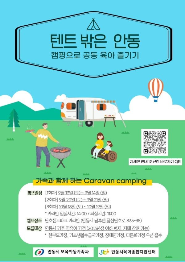 권기창 시장은 "이번 캠핑 프로그램은 가족이 함께 자연 속에서 여유로운 시간을 보내며 공동육아의 즐거움과 가치를 나눌 수 있는 소중한 기회가 될 것"이라며, "앞으로도 다양한 가족 친화 프로그램을 마련해 아이와 부모 모두가 행복한 안동을 만들어 가겠다"고 밝혔다.