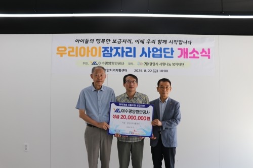 여수광양항만공사는 광양지역자활센터에서 2025년에 새롭게 추진하는 '우리아이잠자리 자활사업'에 2000만원 후원금을 전달하며 자활에 참여하는 지역 취약계층 5명이 안정적인 일자리와 생활기반을 마련하는데 기여했다.