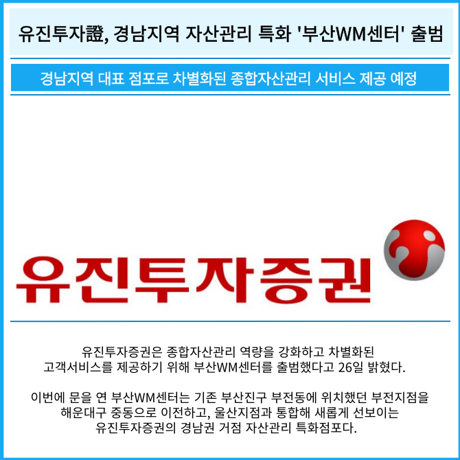 [카드] 유진투자증권, 경남지역 자산관리 특화 '부산WM센터' 출범