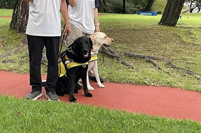 시각장애인이 안내견을 직접 먹이고 씻기고 보행하는, 모든 연습들을 안내견학교와 함께 한 후에야 같이 생활을 시작하게 된다.