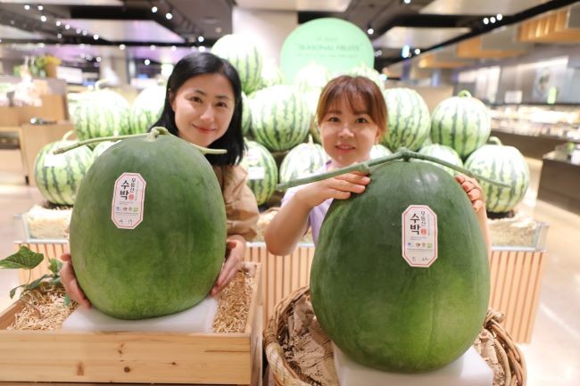 [프라임경제] 롯데백화점 광주점 지하 1층 청과매장에서 올여름 첫 선을 보인 무등산 수박이 눈길을 끌고 있다.