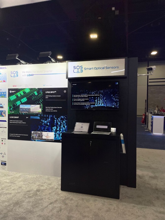 에스오에스랩은 이번 행사에서 자체 개발한 차세대 고정형 3D 라이다 'ML-A', 'ML-U' 등 주력 제품을 비롯해 국내 공항 등에 적용된 '라이다 활용 주차 안내 시스템(LPGS)'과 '라이다 활용 혼잡도 분석 시스템(LCAS)'을 집중 홍보하고 있다.