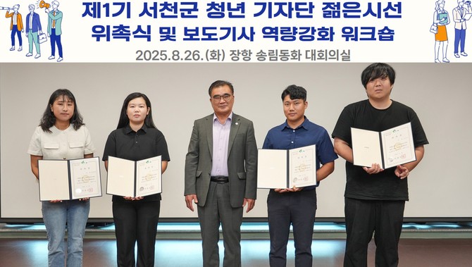 군은 지난 26일 장항 송림동화 대회의실에서 '제1기 서천군 청년기자단 – 젊은 시선' 위촉식을 열고, 20~30대 청년 5명을 공식 위촉했다.