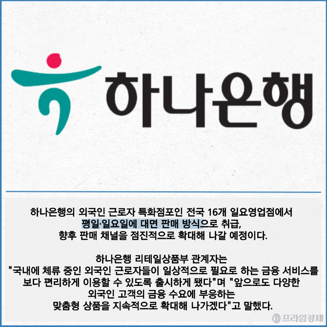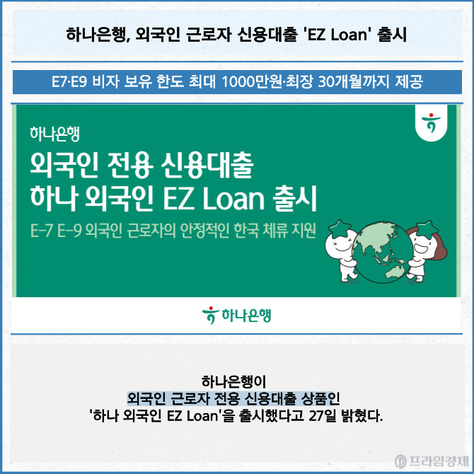 [카드] 하나은행, 외국인 근로자 신용대출 'EZ Loan' 출시