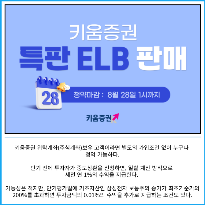 [카드] 키움증권, 가입조건 없는 세전 연 3.6% 특판 ELB 판매