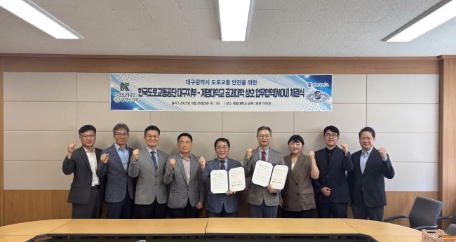 계명대학교 공과대학과 한국도로교통공단(이사장 김희중) 대구지부가 지난 26일 계명대 성서캠퍼스 공학 1호관에서 지역 교통안전 강화를 위한 업무협약을 체결했다.