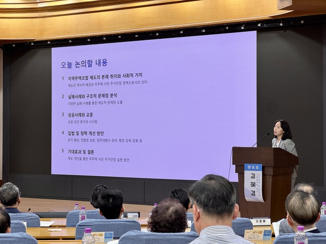 홍성진 대한건설정책연구원 실장은 "투기 방지를 전제로 지주 조합원 제도를 도입하고, 조합원 권리를 제도적으로 보호해야 한다"라고 주장했다.