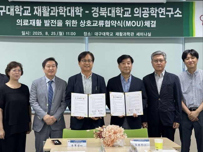 [프라임경제] 대구대학교 재활과학대학(학장 송병섭)과 경북대학교 의공학연구소(소장 장용민)는 지난 25일 경산캠퍼스 재활과학관 세미나실에서 의료재활 분야 발전을 위한 상호교류 협약식을 개최했다.