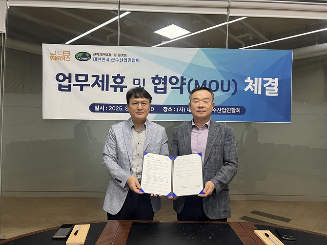 이날 협약식에는 이효상 취업버스 대표와 이정근 군수산업연합회 상근부회장을 비롯해 양 기관 관계자들이 참석했다. 협약에 따라 양측은 매년 7000여명 이상 발생하는 중장기복무 제대군인을 대상으로 △재취업 및 창업 교육 지원 △군수산업연합회 회원사 인력 수요 맞춤형 공급 △정책 연구 및 정보 교류 등을 중심으로 공동사업을 본격화할 계획이다.