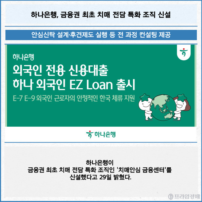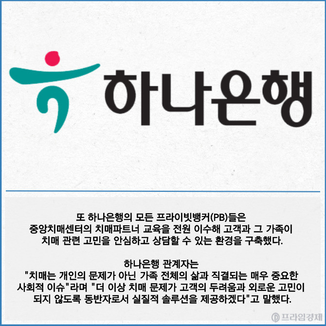 [카드] 하나은행, 금융권 최초 치매 전담 특화 조직 신설