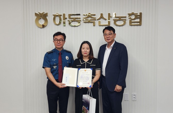 하동축산농협은 지난 26일 이 계장이 금융사기 차단에 기여한 공로를 인정받아 하동경찰서로부터 감사장과 포상금을 수여 받았다.