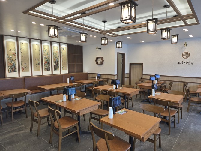 본우리반상 충주점은 자가용 이용 고객이 많은 지역 특성을 반영해, 관공서 인근의 우수한 접근성은 물론 주차가 편리한 넉넉한 공간과 합리적인 임대료 조건까지 두루 갖춘 최적의 입지로 출점이 결정됐다. 기존 도심 매장과는 차별화된 넓은 공간 및 구성으로 고객들이 여유롭고 편안한 분위기 속에서 정통 한식의 맛과 멋을 동시에 경험할 수 있도록 설계했다.