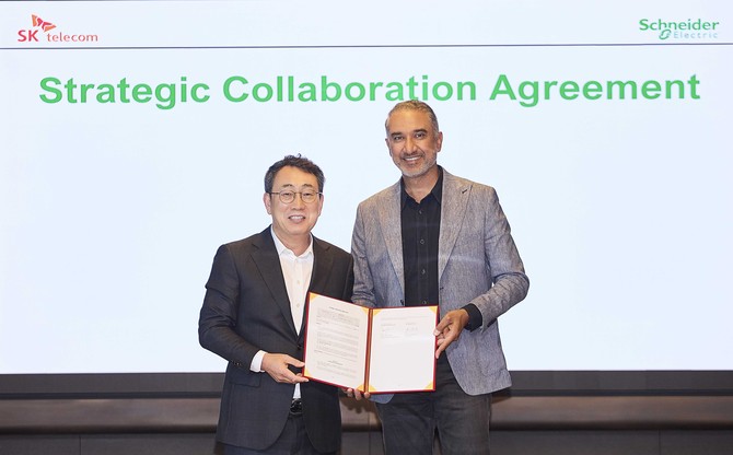 SKT는 31일 슈나이더 일렉트릭과 MEP(기계·전기·배관) 장비 통합 구매 계약을 체결했다고 밝혔다. 이번 계약으로 슈나이더의 배전반, UPS, 변압기, 자동제어 등 핵심 장비가 데이터센터에 적용된다.