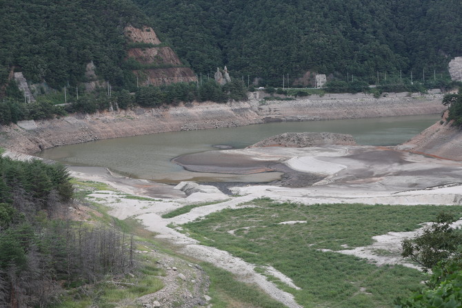 강릉시는 지난 27일부터 동의 가구를 대상으로 수도계량기를 75%까지 잠그는 자율 제한급수 2단계를 시행 중이다. 앞서 저수율이 25% 이하로 내려갔던 지난 20일에는 5만3485가구를 대상으로 50% 제한급수를 실시했다. 농업용수는 '3일 공급·7일 단수' 체계에서 전면 중단으로 전환됐다.