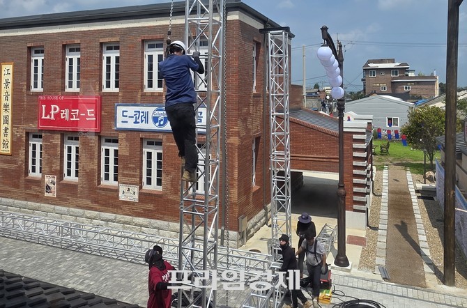 [프라임경제] 충남 논산시가 주최하는 '강경 야행(夜行)' 축제를 앞두고 강경 근대문화거리 일대에서 행사 준비가 한창이다. 그러나 무대 설치 현장에서 작업자가 안전장비 없이 고공 작업을 하는 장면이 포착돼, '안전 불감증' 논란이 거세지고 있다.