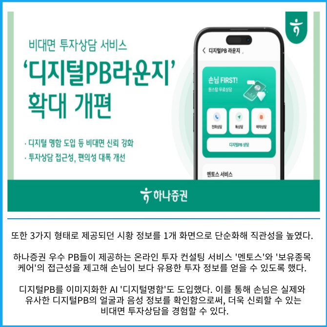 [카드] 하나증권, 비대면 투자상담 서비스 '디지털PB라운지' 개편