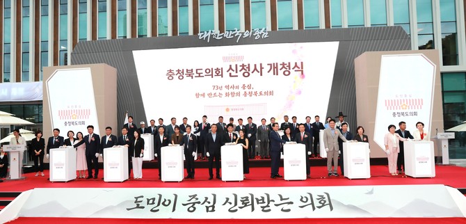 개청식에는 이양섭 의장을 비롯해 역대 의장, 도의원, 김영환 충북도지사, 김태형 충북도부교육감, 유주열 충청북도의정회장, 최호정 대한민국시도의회의장협의회장 등이 참석해 신청사 개청을 축하했다.