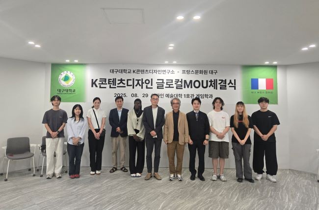 [프라임경제] 대구대학교 K콘텐츠디자인연구소(소장 김시만 교수)와 주한 프랑스문화원 대구센터(원장 이승욱)가 지난 29일 경산캠퍼스 디자인예술대학에서 'K콘텐츠디자인 글로컬 협력'을 위한 업무협약을 체결했다.