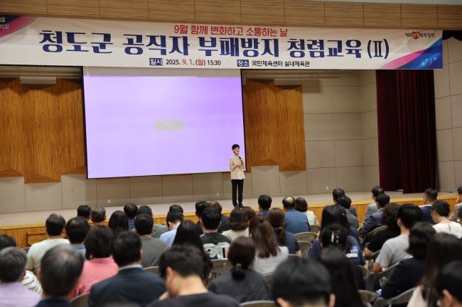 청도군은 지난 1일 청도국민체육센터에서 전 공직자가 참석한 가운데 '2025년 공직자 부패방지 청렴 교육'을 실시했다.