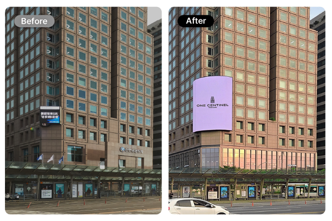 건물 외관도 눈에 띄게 변화됐다. 기존 소형 전광판을 대형 곡면 미디어 광고판으로 교체해 여의도 교차로 3면에서 강력한 가시성을 확보했다.