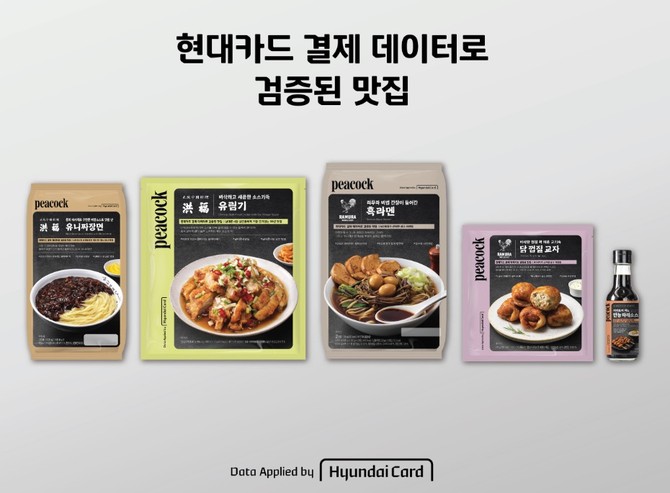 현대카드는 이마트와 손잡고 '피코크: 현대카드 결제 데이터로 검증된 맛집' 5종을 출시했다고 3일 밝혔다. 이번 제품은 현대카드 2023~2024년 결제 데이터를 바탕으로 서울 시내 맛집 3곳을 선정해 대표 메뉴를 간편식으로 구현한 것이다. 맛집 발굴과 데이터 검증은 현대카드 데이터랩이 맡았으며, 메뉴 개발에는 약 1년 반이 소요됐다.