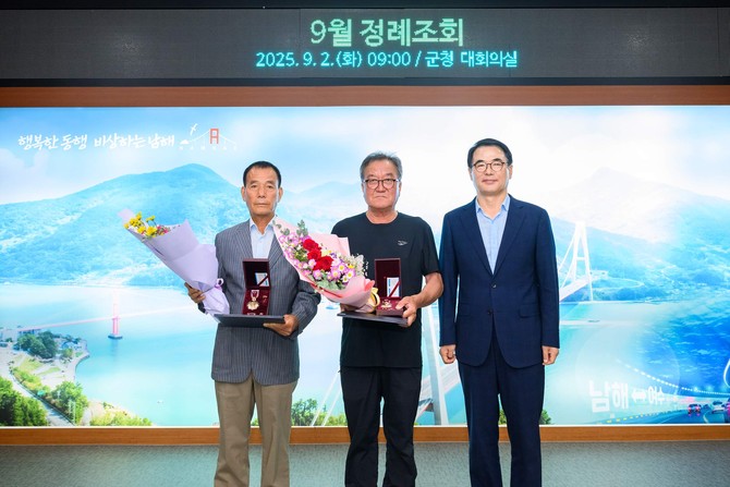 [프라임경제] 남해군(군수 장충남)은 지난 9월2일 6·25전쟁 참전용사 고(故)신동민 하사와 고(故)박남길 상병의 유족에게 화랑무공훈장을 전수했다고 3일 밝혔다. 이번 전수식은 남해군청 대회의실에서 진행됐으며, 고 신동민 하사의 조카 신선철 씨와 고 박남길 상병의 외조카 서홍태 씨가 훈장을 대신 수령했다.