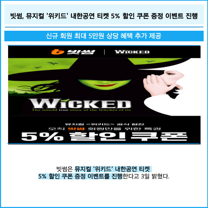 [카드] 빗썸, 뮤지컬 '위키드' 내한공연 티켓 5% 할인 쿠폰 증정 이벤트 진행