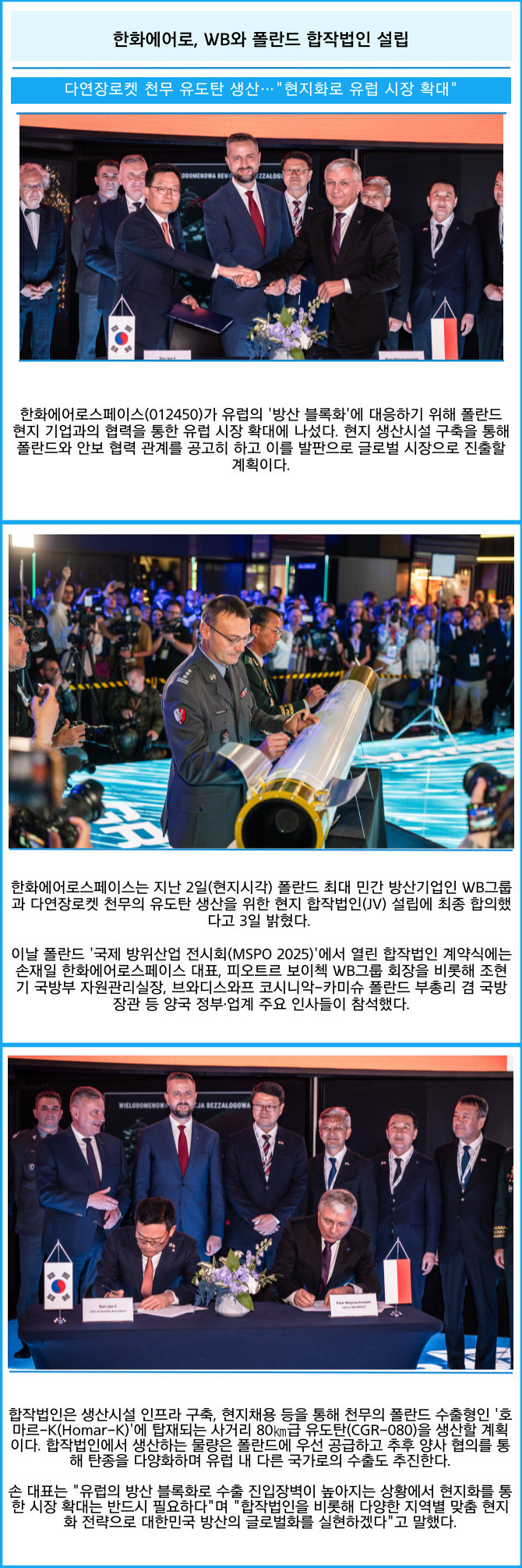 [카드] 한화에어로, WB와 폴란드 합작법인 설립