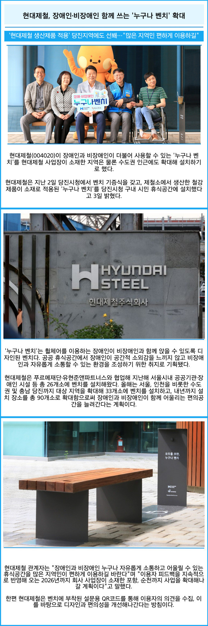 [카드] 현대제철, 장애인·비장애인 함께 쓰는 '누구나 벤치' 확대