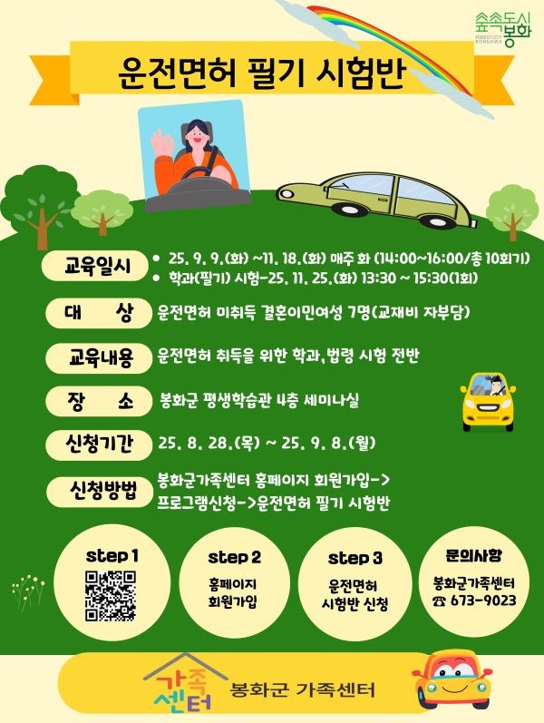 [프라임경제] 봉화군가족센터가 이달부터 결혼이민여성 7명을 대상으로 '운전면허 필기 시험반' 프로그램을 운영한다.