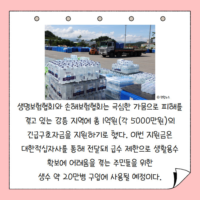 [카드] 생·손보협회, 강릉 가뭄 위기에 생수 1억원 지원