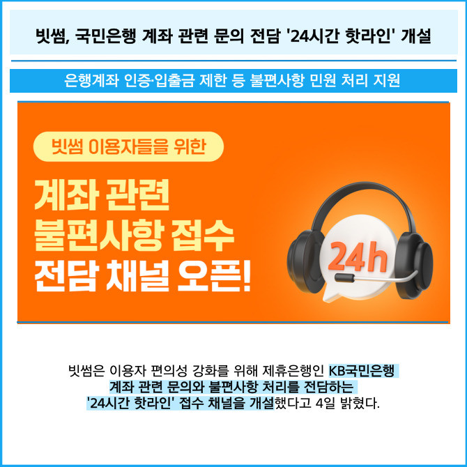 [프라임경제] 빗썸은 이용자 편의성 강화를 위해 제휴은행인 KB국민은행 계좌 관련 문의와 불편사항 처리를 전담하는 '24시간 핫라인' 접수 채널을 개설했다고 4일 밝혔다.