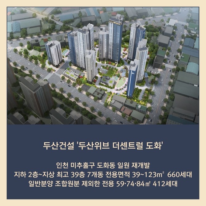 [프라임경제] 두산건설(011160)이 인천 미추홀구 도화동에 들어서는 '두산위브 더센트럴 도화' 견본주택을 개관하고, 본격 분양 절차에 돌입한다.