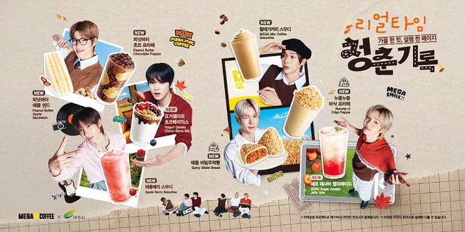 메가MGC커피가 글로벌 아티스트 라이즈(RIIZE)와 협업해 가을 시즌 신메뉴 8종을 출시했다. 이번 SMGC 캠페인의 콘셉트는 '가을 한 컷 설렘 한 페이지, 청춘기록'으로 수확의 계절을 맞아 청춘의 성장과 결실을 담아냈다.