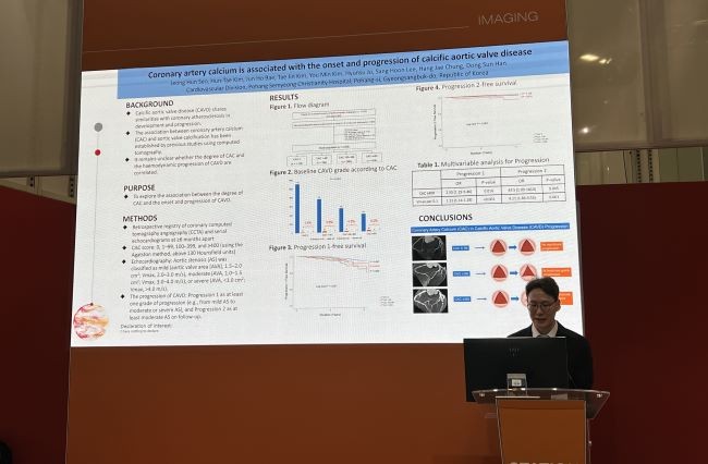 서정훈 과장은 이번 학회에서 '관상동맥 칼슘과 석회화 대동맥판막질환의 발생 및 진행과의 연관성'을 주제로 한 연구 결과를 발표했으며, 이는 심장 전산화 단층촬영(CT)의 기술적 발전을 다루는 세션 프로그램 중 하나로 진행했다.