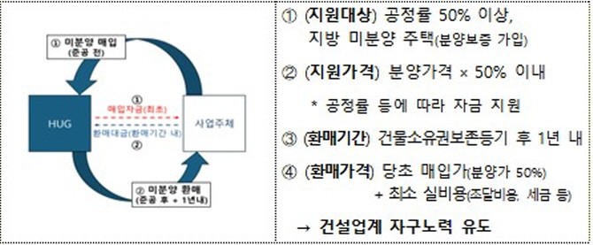 참여를 원하는 건설사는 HUG 누리집을 통해 신청할 수 있으며, 국토부는 가격 적정성, 준공 가능성, 안전성 등을 종합적으로 평가해 매입 대상을 선정할 계획이다.