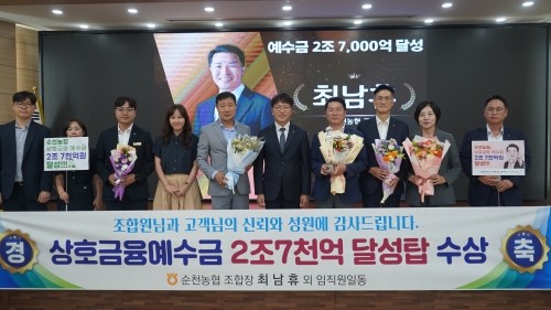 4일 순천농협(조합장 최남휴)은 NH농협 전남본부 수상식에서 예수금 2조7000억원 달성의 성과를 인정받아 '달성탑'을 수상했다. 최근 금융시장의 불확실성과 경기 침체 등 어려운 환경 속에서도 안정적인 자산 운용, 철저한 리스크 관리, 고객 중심의 서비스를 통해 성장을 이어간 점이 높은 평가를 받았다.