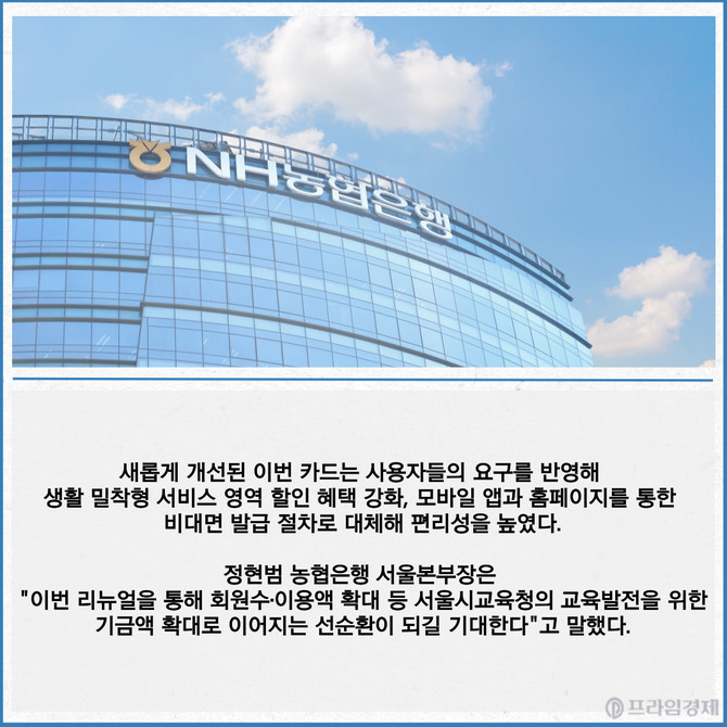 [카드] 농협은행·서울시교육청, 교육사랑카드 리뉴얼 제휴