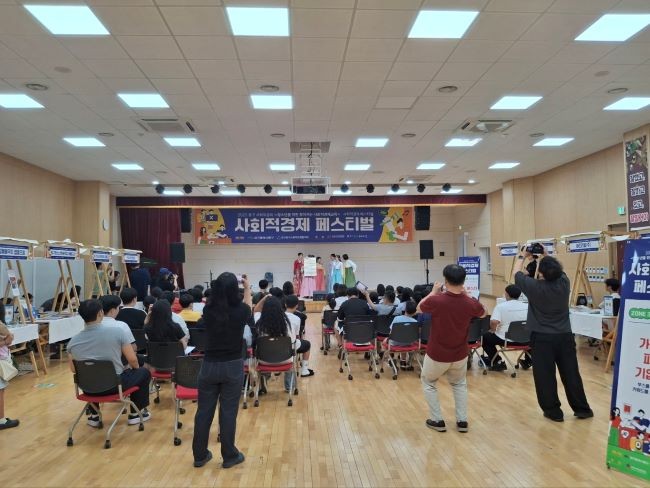 이번 행사는 관내 중·고등학생 및 지역 청소년 120여명이 참여했으며 사회적경제 가치 보물찾기, 부스 체험, 공연 등 다양한 프로그램을 통해 사회적경제를 쉽고 재미있게 이해할 수 있도록 마련됐다.