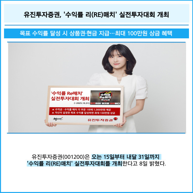 [프라임경제] 유진투자증권(001200)은 오는 15일부터 내달 31일까지 '수익률 리(RE)매치' 실전투자대회를 개최한다고 8일 밝혔다.