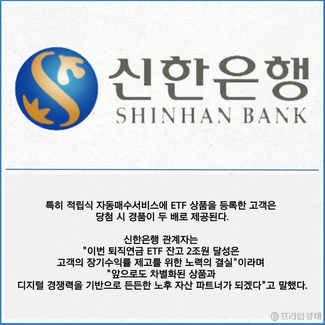 [카드] 신한은행, 퇴직연금 ETF 매수고객 대상 이벤트