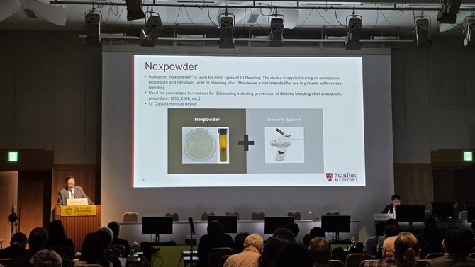 이번 학술 프로그램에서는 미국 스탠포드 대학교 소화기내과 Dr. Joo Ha Hwang이 'Beyond Conventional Hemostasis: The Impact of Adjunctive Powder Therapy on Rebleeding Outcomes'이라는 주제로 발표를 진행했다.
